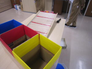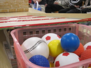 こちらが一つ目のゲーム!スタッフが流すカラーボールを色分けされた箱にひたすら色合わせでいれていくものとなっています。これがまた頭が混乱する…!!!チャレンジャーの利用者様も思わず「やばいやばい!」と焦りを漏らしながらトライされていました(-_-;)