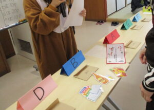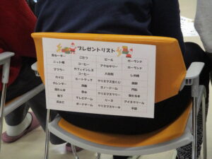 二つ目のゲームはクリスマスプレゼント探し!スタッフが欲しいプレゼントがふんわりと書かれているため、ヒントを駆使してフロアからスタッフが希望するプレゼントを探し出していただくゲームとなっています。