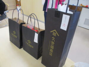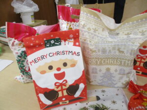 そしてこちらが利用者様へのプレゼント♪ 中身は日用品や、軽食等さまざまなものをご用意させていただきました。