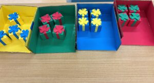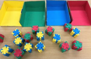 1つ目は4色あるプレゼントをそれぞれに箱に戻すプレゼント仕分けゲーム。